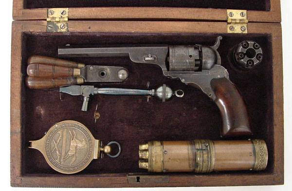 Il est le premier de la lignée, premier revolver fabriqué en série. Premier revolver dont la mise en oeuvre était “facile” 5 coups, calibres variés .28, .31 et .36. Le tout premier fut un modèle “pocket en cal .28” . Ils sont déclinés en modèles “pocket” (poche), “belt” (ceinture) et “Holster” (fontes).